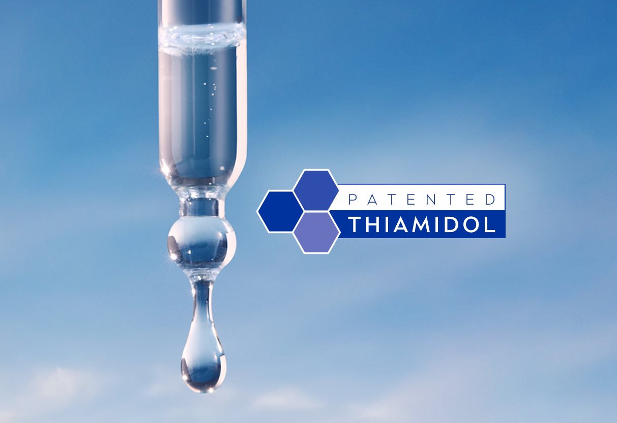 Thiamidol® acts directly at the root of melanin production. It reversibly inhibits an enzyme that plays a key role in melanin production: human tyrosinase. At the molecular level, the active ingredient fits precisely into the enzyme’s active site, effectively blocking the conversion of tyrosine into precursors of the skin pigment melanin.
